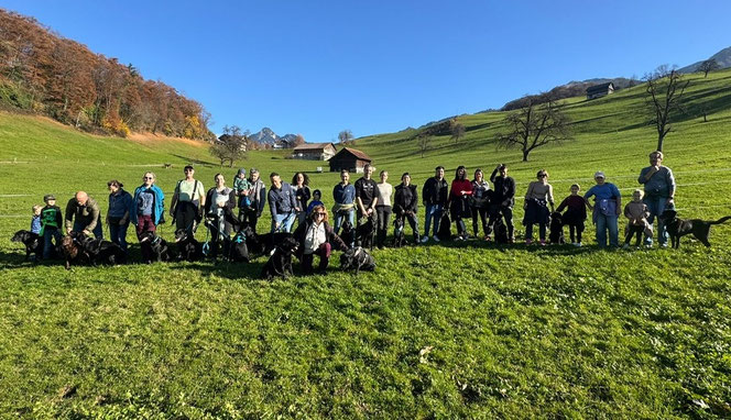 15. November 2025. Bei schönstem Wetter trafen sich zehn Familien von unserem Dutzendwurf um gemeinsam auf dem Erlebnishof in Kerns das 1 Jahrestreffen zu feiern. Vielen Dank Nadin Wieland von Papi Amici und Sabine und Tobias Müller von Mama Onera für die Organisation. Nach einem kurzen Spaziergang durfte die Rasselbande (19 Hunde) zusammen herumtoben und es wurden einige Übungen gemacht. Danach gab es ein Apero und selber Pizza belegen auf dem Hof, sodass auch das Gesellige unter den Zweibeinern nicht zu kurz kam. Ein überaus gelungener und schöner Anlass, danke seid ihr alle der Einladung gefolgt!