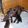 Ebony du warst die Stammmutter unserer Zucht, unser Braunbär, der mit uns durch dick und dünn ging, mein Mamiditti! Im Hundesport mit Begeisterung dabei, aber an den Prüfungen als meine Nerven versagten, hast du mir klar gemacht, dass du diese Situation nicht brauchst! Soviel konnte ich von dir lernen. Sina durftest du in mehrere Jugend und Hund Lager begleiten, was euch viel Spass machte. Du warst eine ganz besondere Hündin, du hast mit grosser Liebe und Konsequenz deine 19 Welpli grossgezogen, warst deinen 42 Enkel eine super Oma. Leider hast du den jetzigen Wurf nur drei Wochen begleiten dürfen. In erster Linie warst du aber unser über alles geliebter Familienhund. Wir sind froh konnten wir dich von deinen Schmerzen befreien, aber du fehlst uns so!