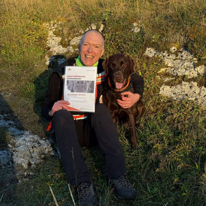 12. Oktober 2025. Marcel Brönnimann und Phoenix Firebird of Eleven Creek haben nach mehrjähriger Ausbildung und Trainings die Prüfung in der Geländesuche bestanden und sind somit einsatzfähiges Rettungshundeteam bei REDOG. Sie können nun bei der Suche nach vermissten Personen in schwierigem Gelände eingesetzt werden. Herzlichen Glückwunsch, das habt ihr super gemacht, wir sind stolz auf euch!