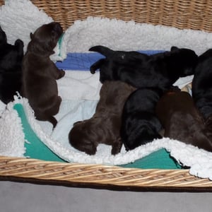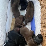 23. Januar 2022. Sie sind endlich da, 1 Hündin braun, 4 Rüden braun, 1 Hündin schwarz, 3 Rüden schwarz!