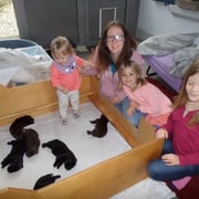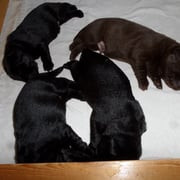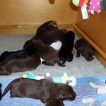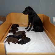 ... Es geht allen Welpen sehr gut, alle haben das Geburtsgewicht verdoppelt, wie ihr sieht, sitzt auch Light manchmal alleine bei ihnen in der Wurfkiste. Auch durften die Enkelkinder Lara, Lina und Leni das erste mal auf Besuch kommen.