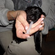 Während Moon in der Klinik war, haben wir die Welpen mit der Flasche gefüttert, die sie zum Glück gut angenommen haben und Light hat die pflegerische Betreuung mit Putzen erledigt. Auch jetzt hat Moon die Unterstützung von Light bei der Brutpflege!