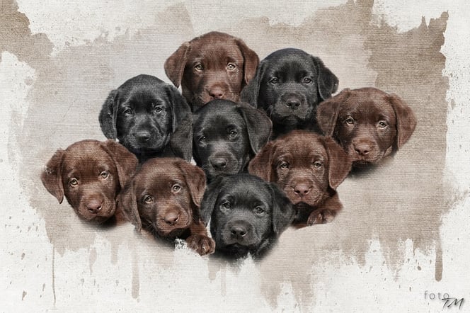 4 Rüden braun, 3 Rüden schwarz, 1 Hündin braun, 1 Hündin schwarz