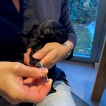 8. Januar 2025. Heute wurden unsere Zwerge von Dr. Tobias Vögtli und Noemie Sutter besucht und untersucht. Herz, Zähne, Ohren, Nabel und bei den Rüden die Hoden wurden genau kontrolliert. Alle sind gesund und topfit. Das Impfen und Chipen haben sie dank der Parfaittube ohne einen Mucks über sich ergehen lassen. Nun sind alle bereit um in ihre neuen Familien zu ziehen.