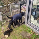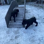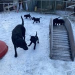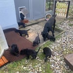 24. Dezember 2024. Die Gartensaison ist eröffnet, die Welpen sind alle sofort durch die Klappe hinausgekommen und haben den Garten erkundigt. Da es sehr kalt ist, mussten Sie nach einer halben Stunde wieder hinein in das warme Welpenzimmer.