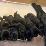 8 Rüden schwarz, 4 Hündinnen schwarz