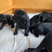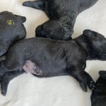 16. Oktober 2024. Wir freuen uns riesig, der heutige Ultraschall zeigte bei Onera mehrere Fruchtanlagen. Nun hoffen wir auf eine gute Geburt Mitte November und einer vollen Wurfkiste mit gesunden, schwarzen Labradors.