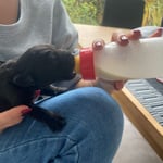 15. Oktober 2024. Wie die Zeit rast, das Dutzend ist nun vier Wochen alt und schon ist Halbzeit! Das Innengehege wurde vergrössert und Quinta kommt viel zum Spielen zu den Zwergen. Nebst der Muttermilch und Milchersatz fressen die Kleinen nun sehr gerne ihren Fleischbrei. Die vielen Spielsachen werden rege genutzt und auch das Klo wird brav benutzt.