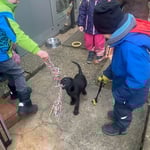 7. Januar 2025. Hui war das heute aufregend für unser Dutzend, ein Dutzend Kindergärtner kam uns heute besuchen. Die Kids und Doggies hatten einen Riesenspass und alle haben das super gemeistert, Zwei-und Vierbeiner.