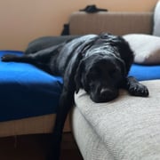 Zuhause ist er gechillt, verschmust und ein richtiges Kuschelmonster mit Gross und Klein.