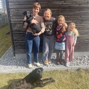 Februar 2025. Nachdem Toby wegen Überforderung der Besitzerin zu uns zurückgebracht wurde, hat er das grosse Los gezogen und durfte zu Marie-Claude und Werner Schöpfer und ihren Töchtern Line, Maj und Eleen und Labrador Nero ins Wallis nach Brig-Glis ziehen. Familie Schöpfer hatte schon Ivy aus unserer Zucht, die leider nicht einmal acht Jahre alt wurde. Werner wird Odin bei der Kantonalen Walliser Rettungsorganisation zum Personensuchhund ausbilden, herzlichen Dank bietet ihr dem kleinen Odin ein so schönes aktives Hundeleben.